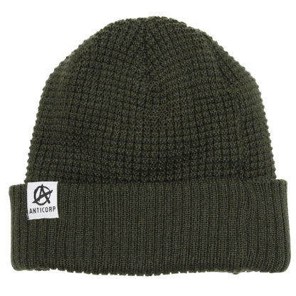 Features contrast knit roll cuff, soft fleece lining and Anticorp label on the cuff.